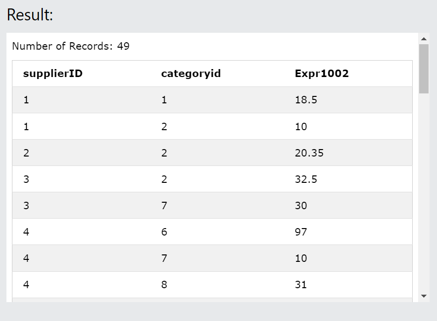 이렇게 SupplierID가 1인 사람이 categoryID는 무엇 무엇을 갖고있는지 볼 수 있음